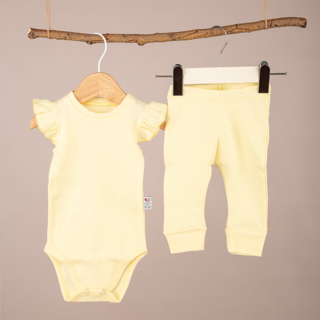 Omuz Fırfırlı Sarı Body ve Patiksiz Alt
