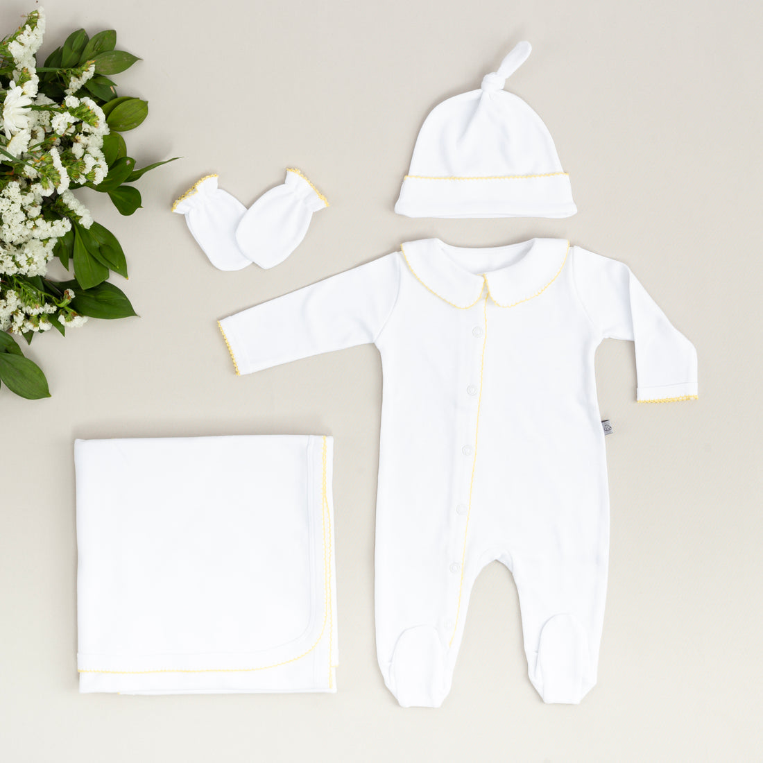 Elegant Sarı Tığ İşi Süslemeli 5'li Organik Hastane Çıkışı