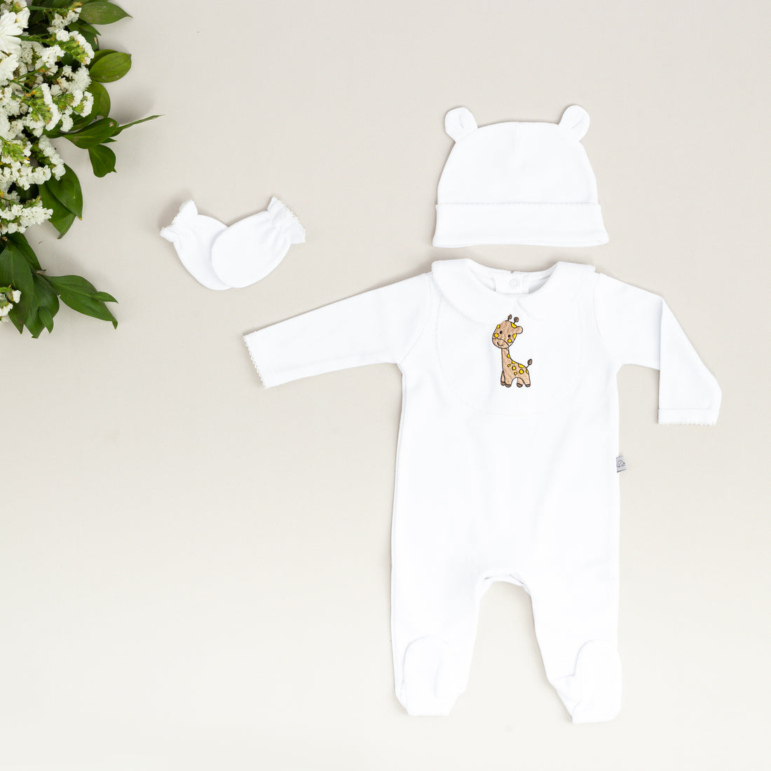 Royal Ekru Beyaz Tığ İşi Süslemeli Zürafa Nakışlı 4'lü Organik Hastane Çıkışı
