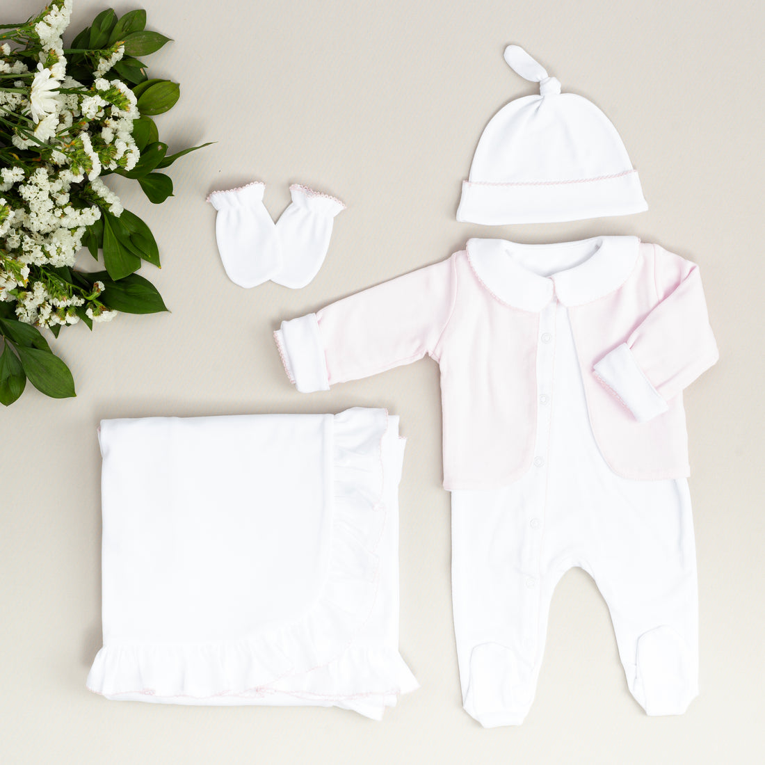 Royal Pembe Rokoko El Nakışlı 5'li Organik Hastane Çıkışı