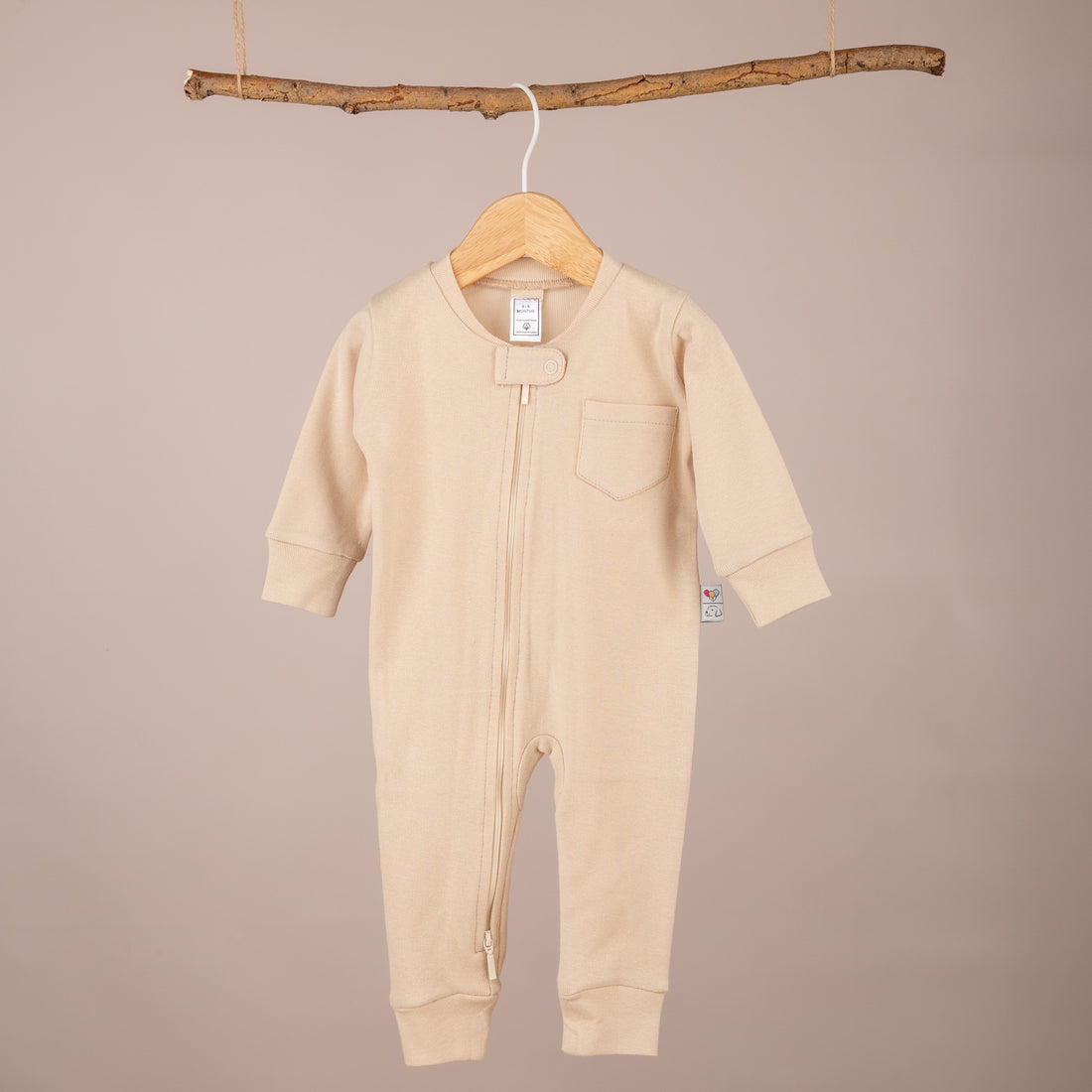 Cepli Çift Taraflı Fermuarlı Patiksiz Bej Tulum