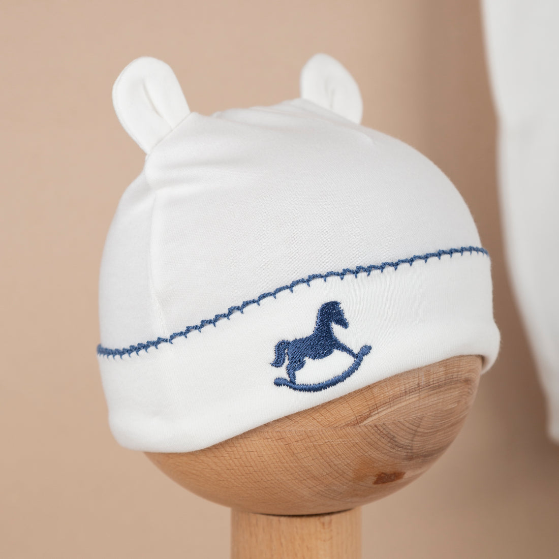 Asil Bej Tığ İşi Süslemeli Çelenkli At Nakışlı Bebek Şapkası