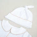 Sadelik ve şıklığı bir araya getiren tasarımımız, hem işlevselliği hem de zarafetiyle öne çıkar. Bebeğinizin ilk günlerinde onunla birlikte olacak bu set, fotoğraflarda harika görünecek ve ilk anılarınızda özel bir yer edinecektir.