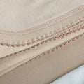 - Bej tığ işi süslemeli bej renkli biyeli battaniye.
