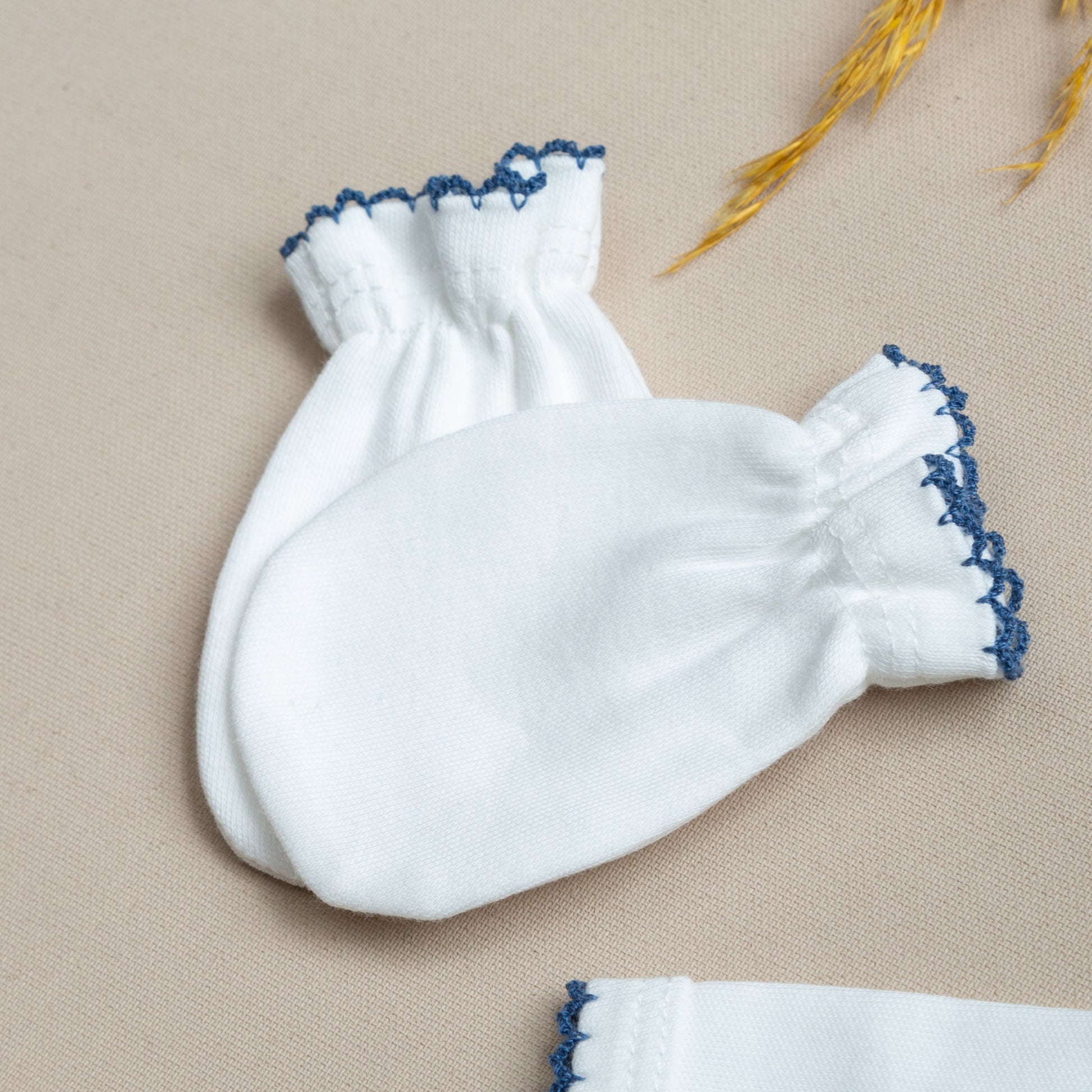 Elegant İndigo Mavi Tığ İşi Süslemeli 4'lü Organik Hastane Çıkışı