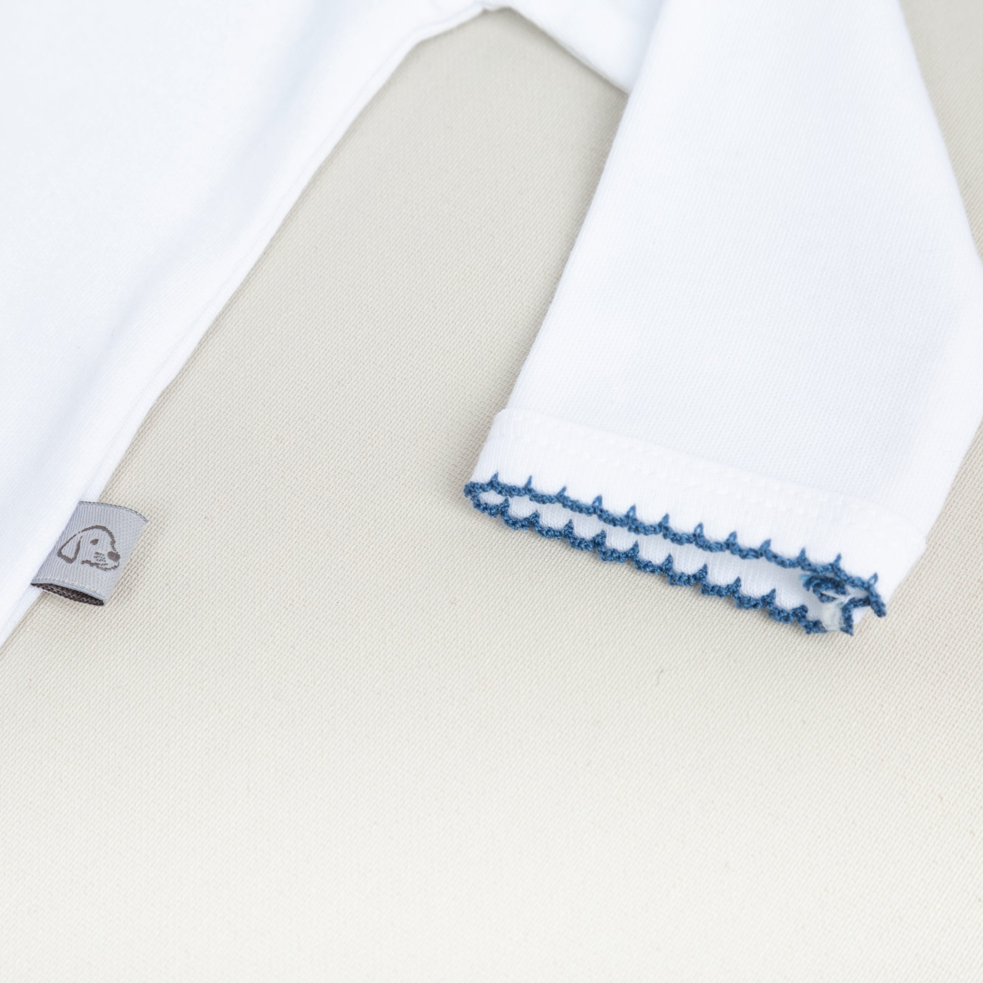 - İndigo mavi tığ işi süslemeli bebe yaka yandan çıtçıtlı tulum
