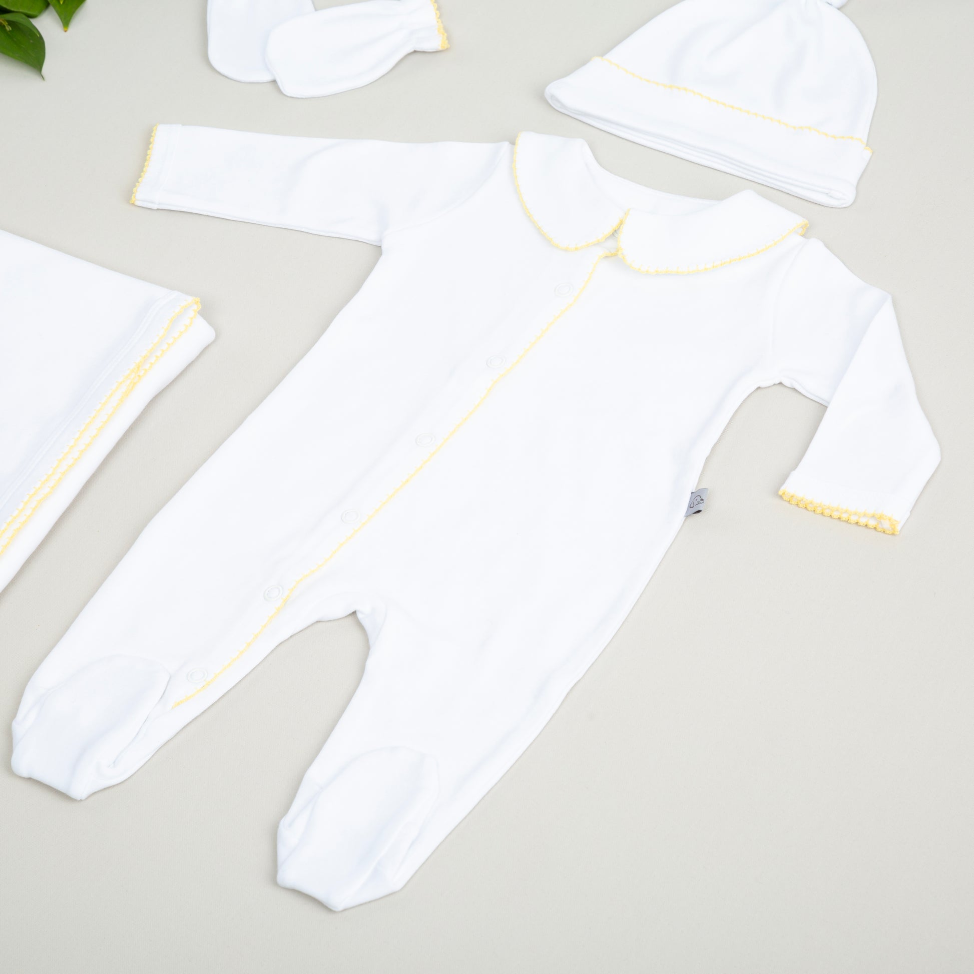 Elegant Sarı Tığ İşi Süslemeli 5'li Organik Hastane Çıkışı