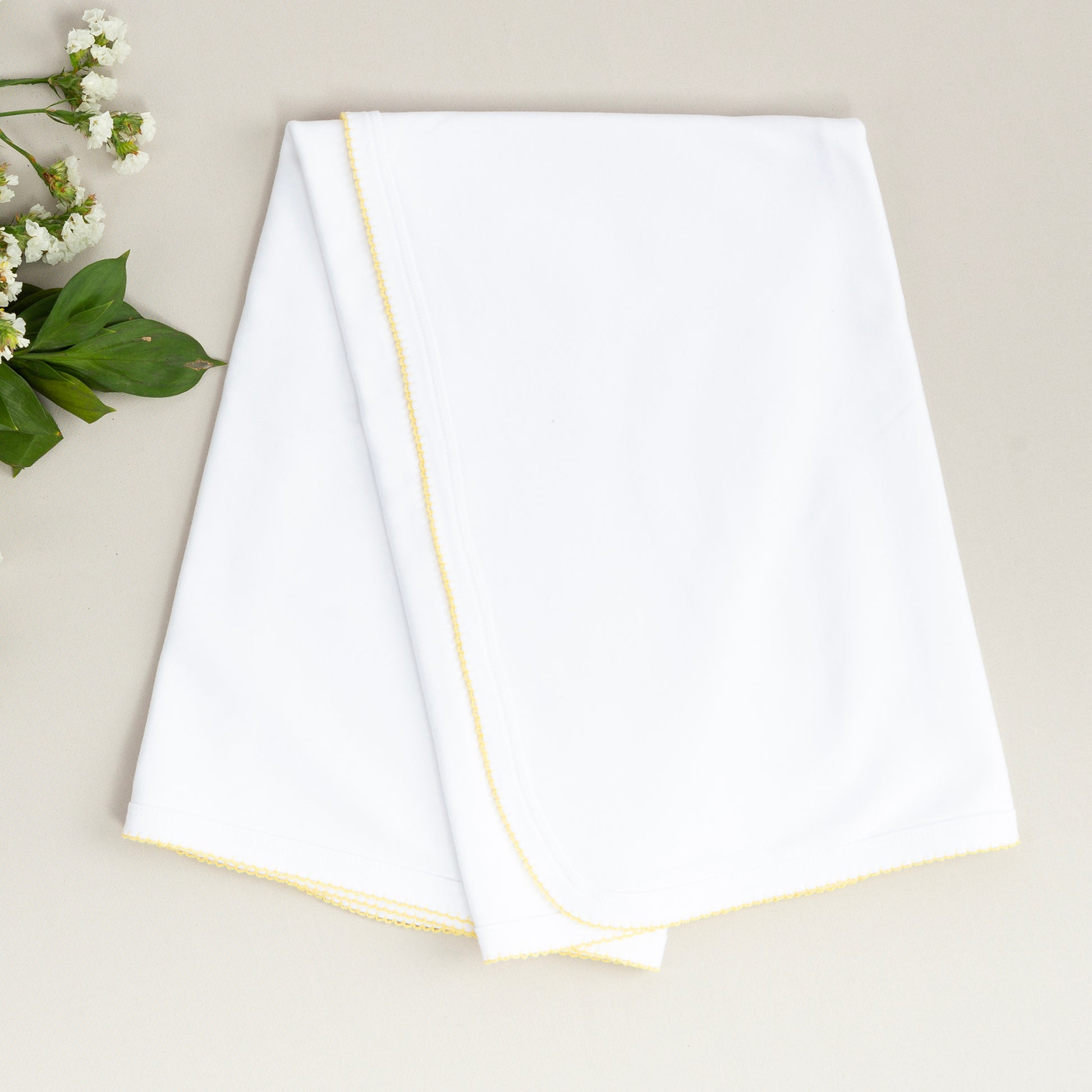 - Sarı tığ işi süslemeli biyeli battaniye.