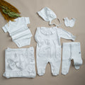 Sadelik ve şıklığı bir araya getiren tasarımımız, hem işlevselliği hem de zarafetiyle öne çıkar. Bebeğinizin ilk günlerinde onunla birlikte olacak bu set, fotoğraflarda harika görünecek ve ilk anılarınızda özel bir yer edinecektir.