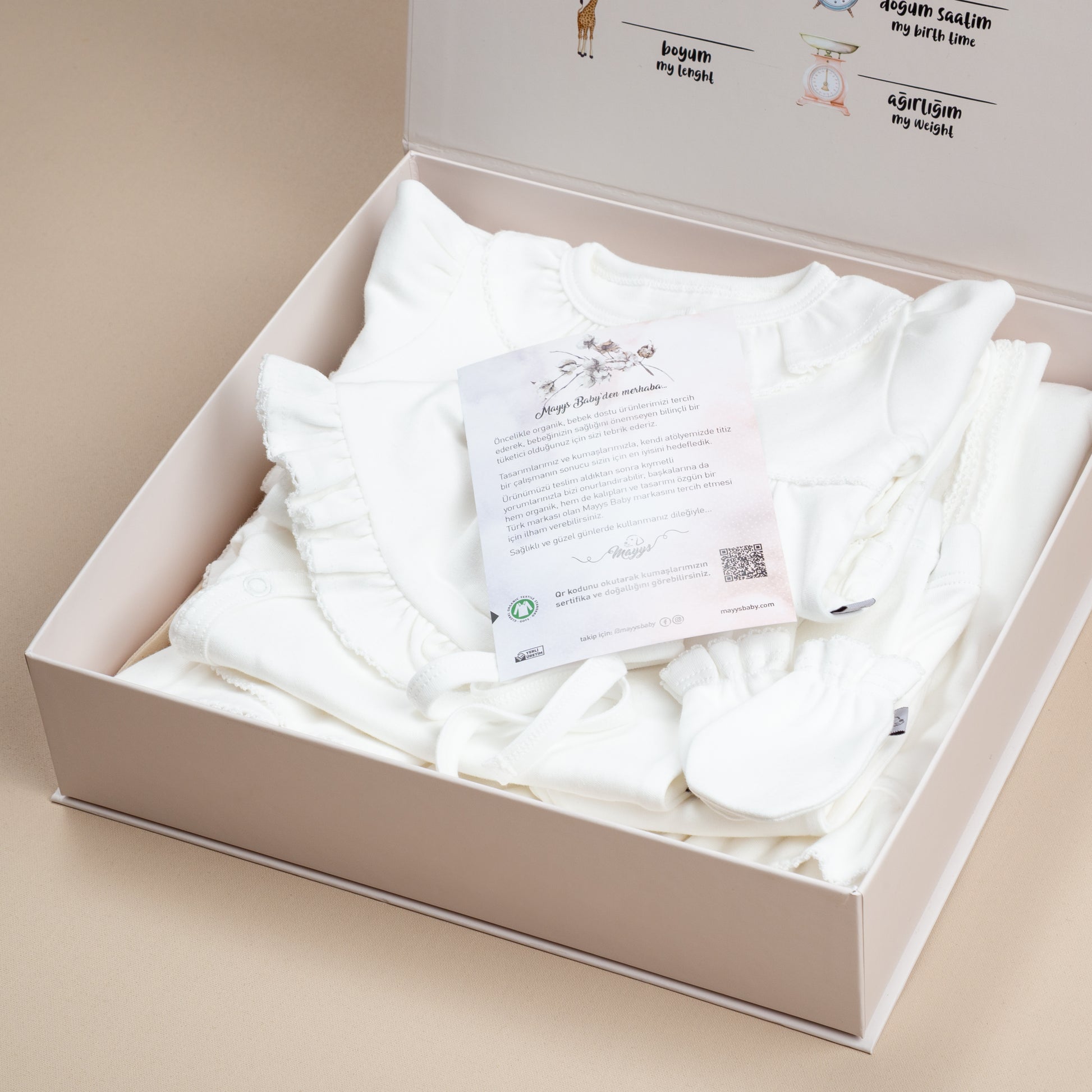 Çevreye duyarlı üretim anlayışımız ve üstün kaliteye olan bağlılığımızın bir ifadesi olan bu hastane çıkış seti, hem bebeği için en iyisini isteyen ebeveynler hem de anlamlı bir hediye arayanlar için ideal bir seçimdir.