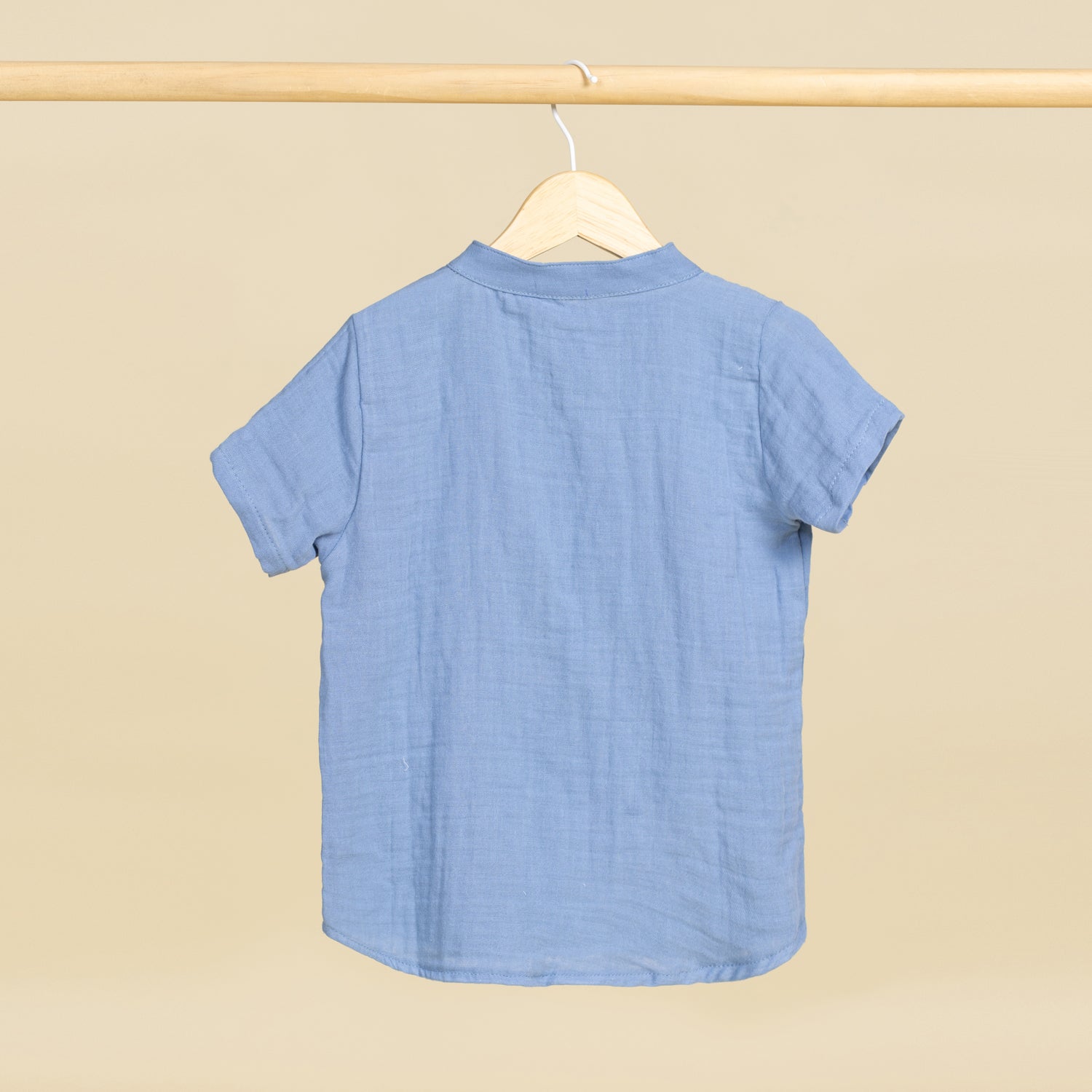 Müslin Kısa Kollu Mavi Erkek Çocuk Gömleği