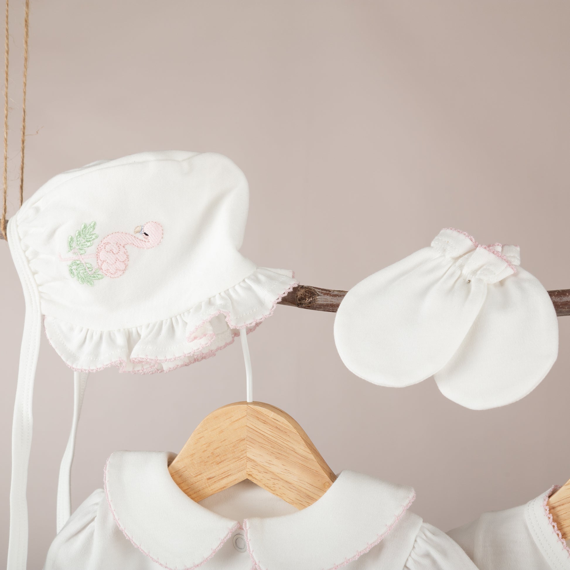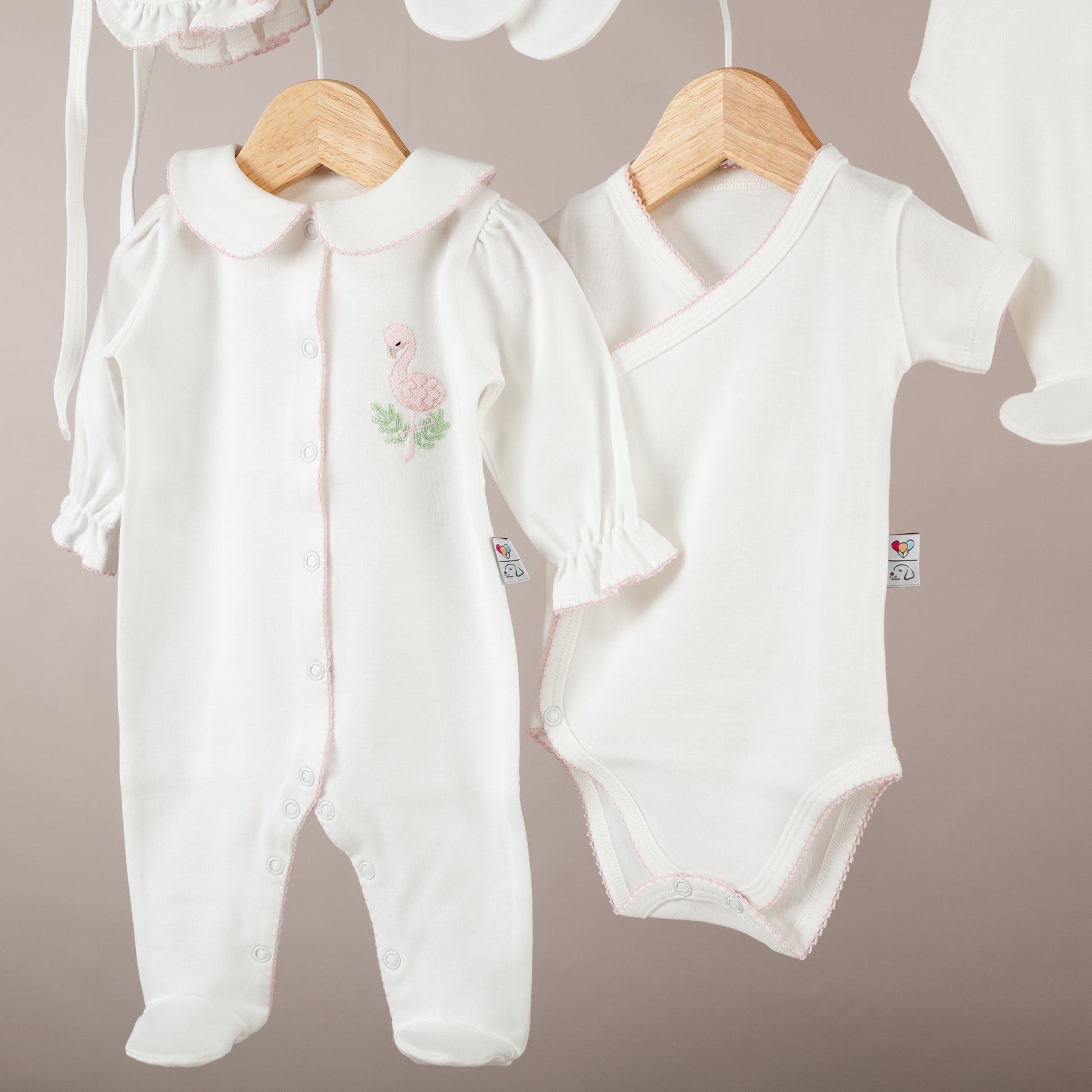 Nazenin Flamingo Nakışlı Pembe Tığ işi Süslemeli Organik 6'lı Hastane Çıkışı Ürün Detayları: