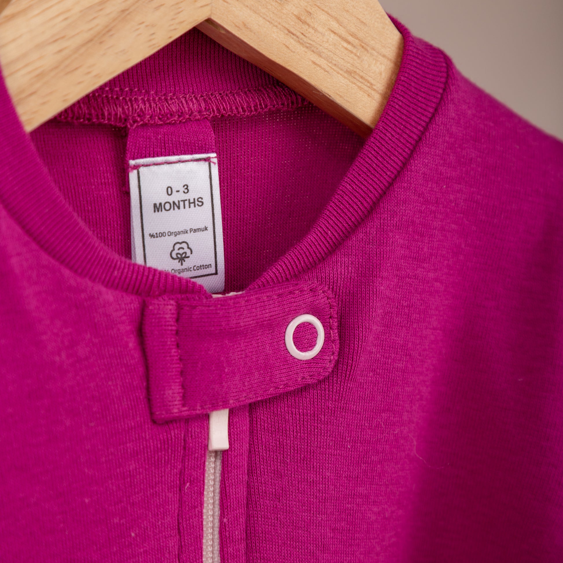 Organik pamuk yapısı, güvenilir fermuar detayı ve estetik tasarımıyla fuşya bebek tulumu, hem sağlıklı hem de şık bir seçimdir. Fonksiyonel detayları anneler için kolaylık sağlarken, zarif tasarımı bebeğinizin gardırobuna farklı bir dokunuş katar.