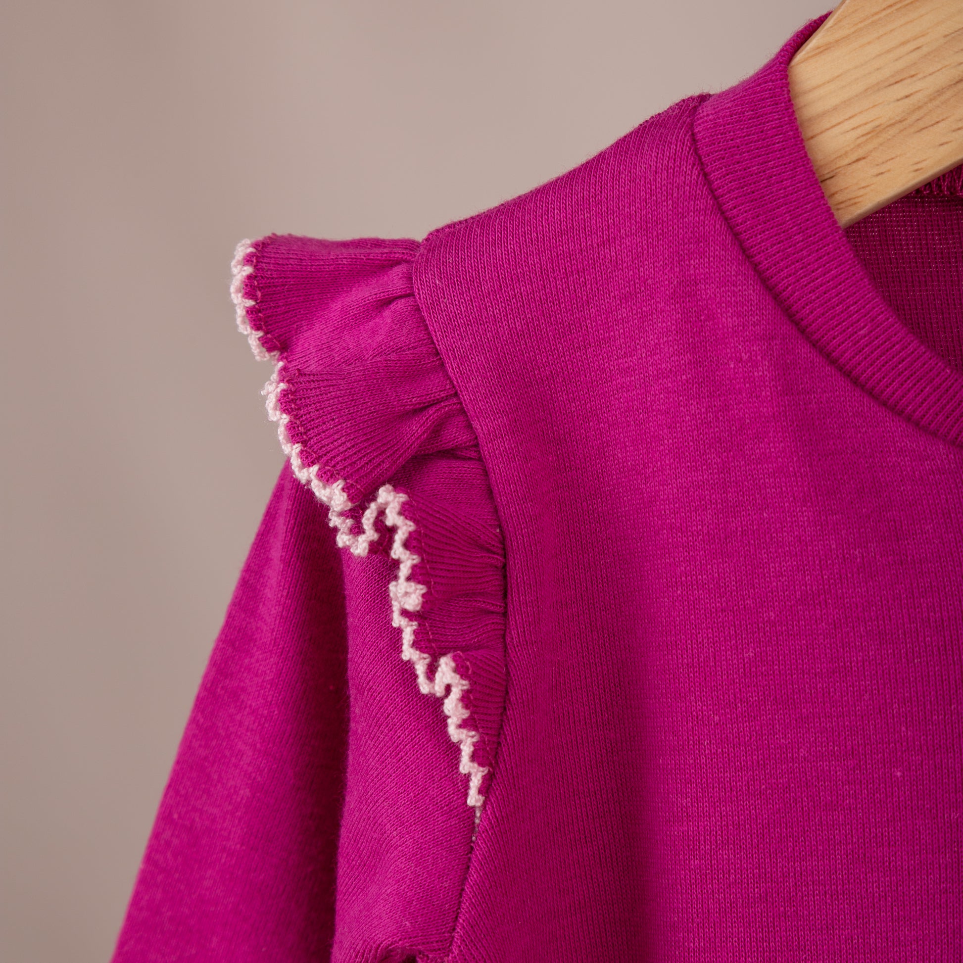 Bebeğinizin konforunu ve şıklığını bir arada sunan Omuz Fırfırlı Çift Taraflı Fermuarlı Patikli Fuşya Bebek Tulum, fonksiyonel tasarımı ve zarif detaylarıyla öne çıkıyor. Günlük kullanımda pratiklik, özel anlarda ise şıklık sağlamak için özenle tasarlanmıştır.