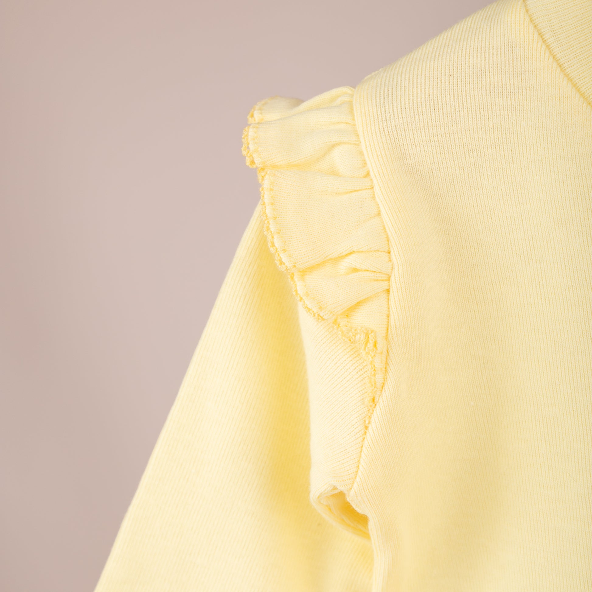 Bebeğinizin konforunu ve şıklığını bir arada sunan Omuz Fırfırlı Çift Taraflı Fermuarlı Patiksiz Sarı Tulum , fonksiyonel tasarımı ve zarif detaylarıyla öne çıkıyor. Günlük kullanımda pratiklik, özel anlarda ise şıklık sağlamak için özenle tasarlanmıştır.