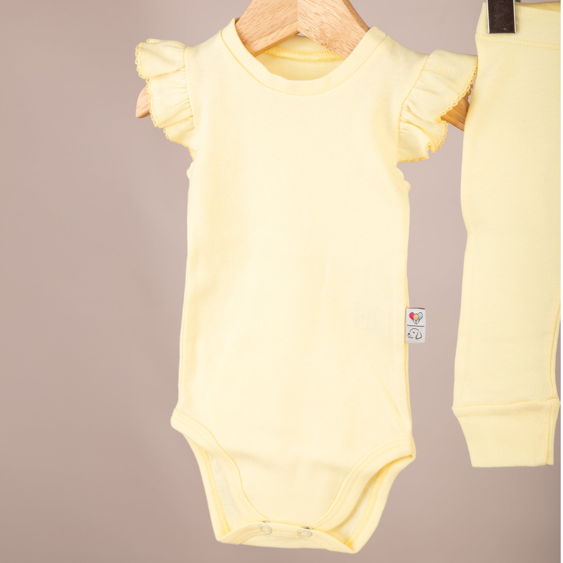 Omuz Fırfırlı Sarı Body ve Patiksiz Alt