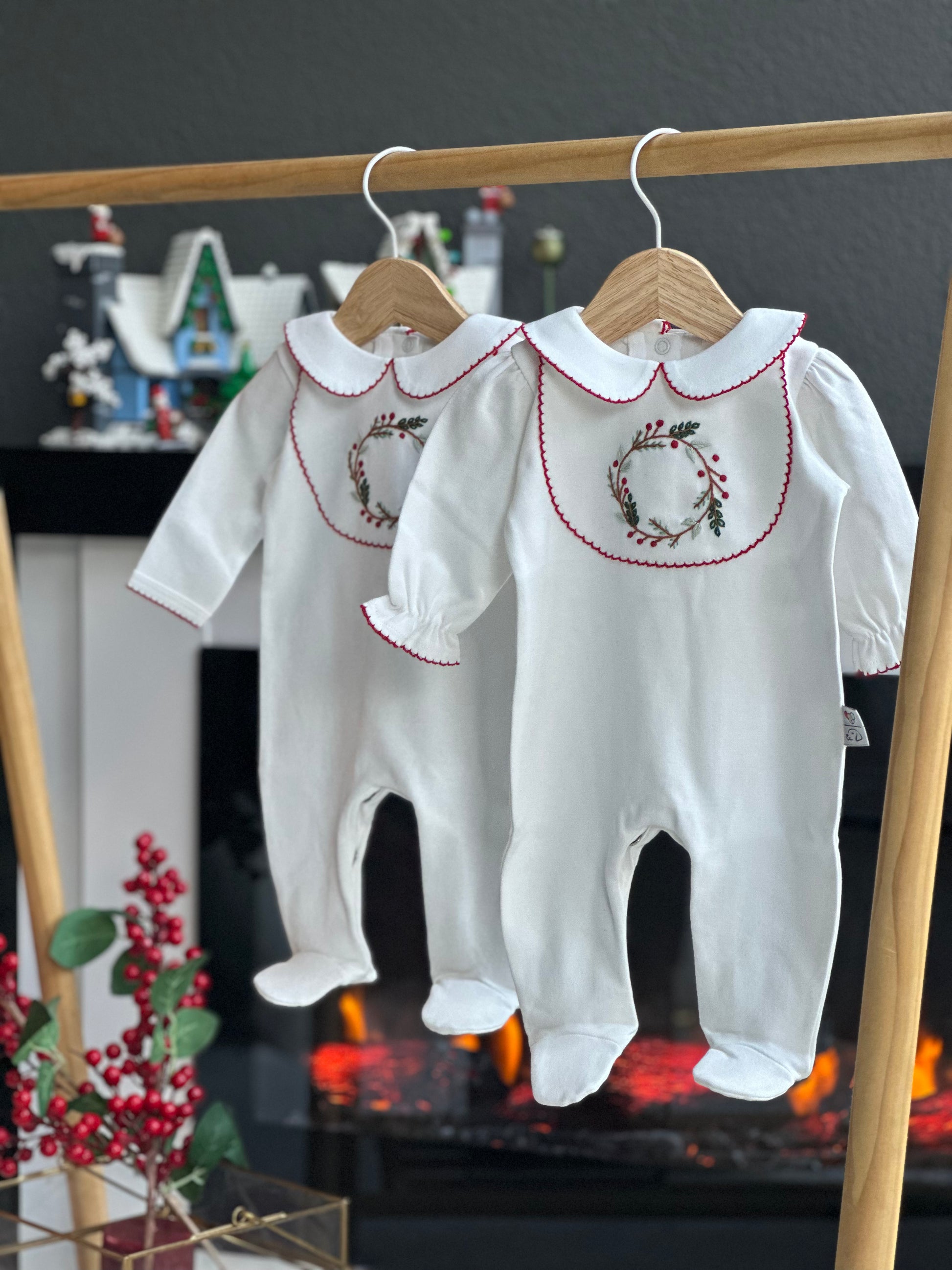 - Yılbaşı nakışlı bebe yaka önlük model , arkadan ve alttan çıtçıtlı tulum